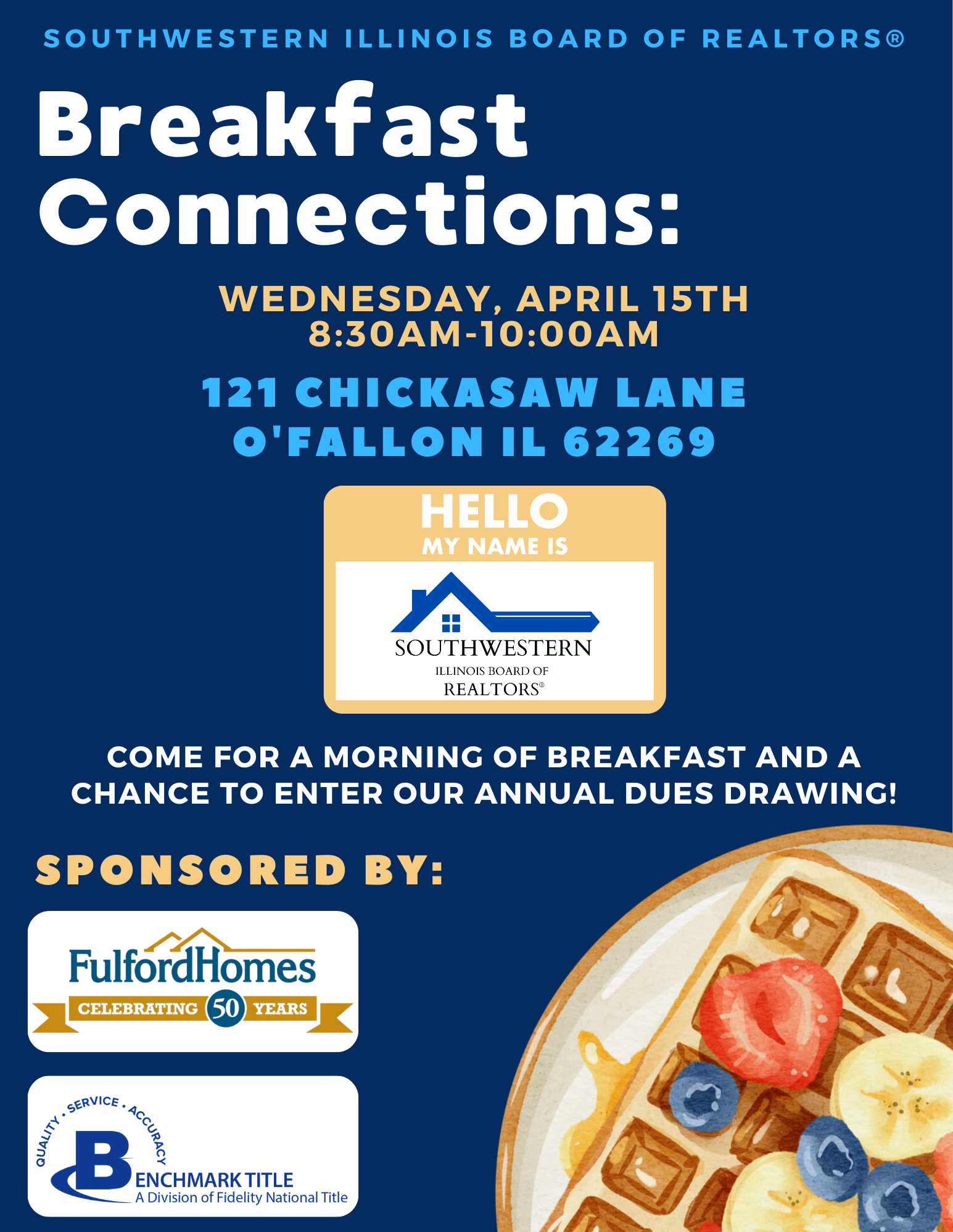Join us for Breakfast Connections on Wednesday, April 15th from 8:30–10:00 AM in O’Fallon. Enjoy breakfast, connect with fellow members, and don’t miss your chance to enter our Annual Dues Drawing!